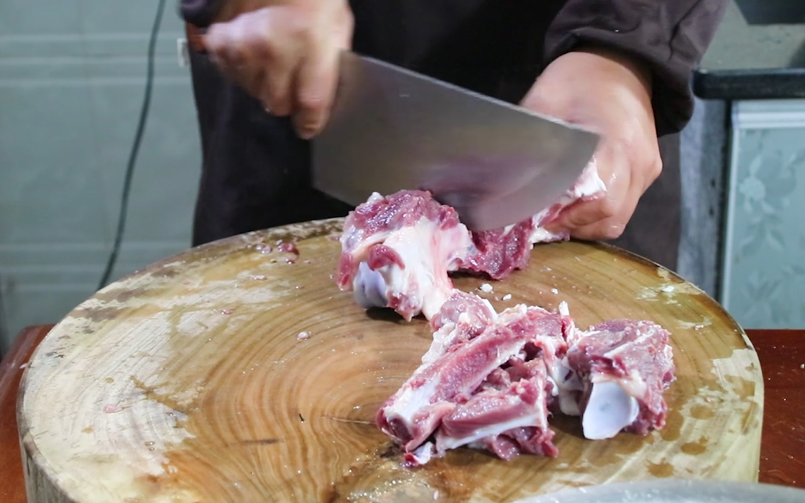 5、把筒骨剁成小快,再放温水里清洗干净,放筒骨的目的是熬出来的汤汁更浓稠和鲜甜些。